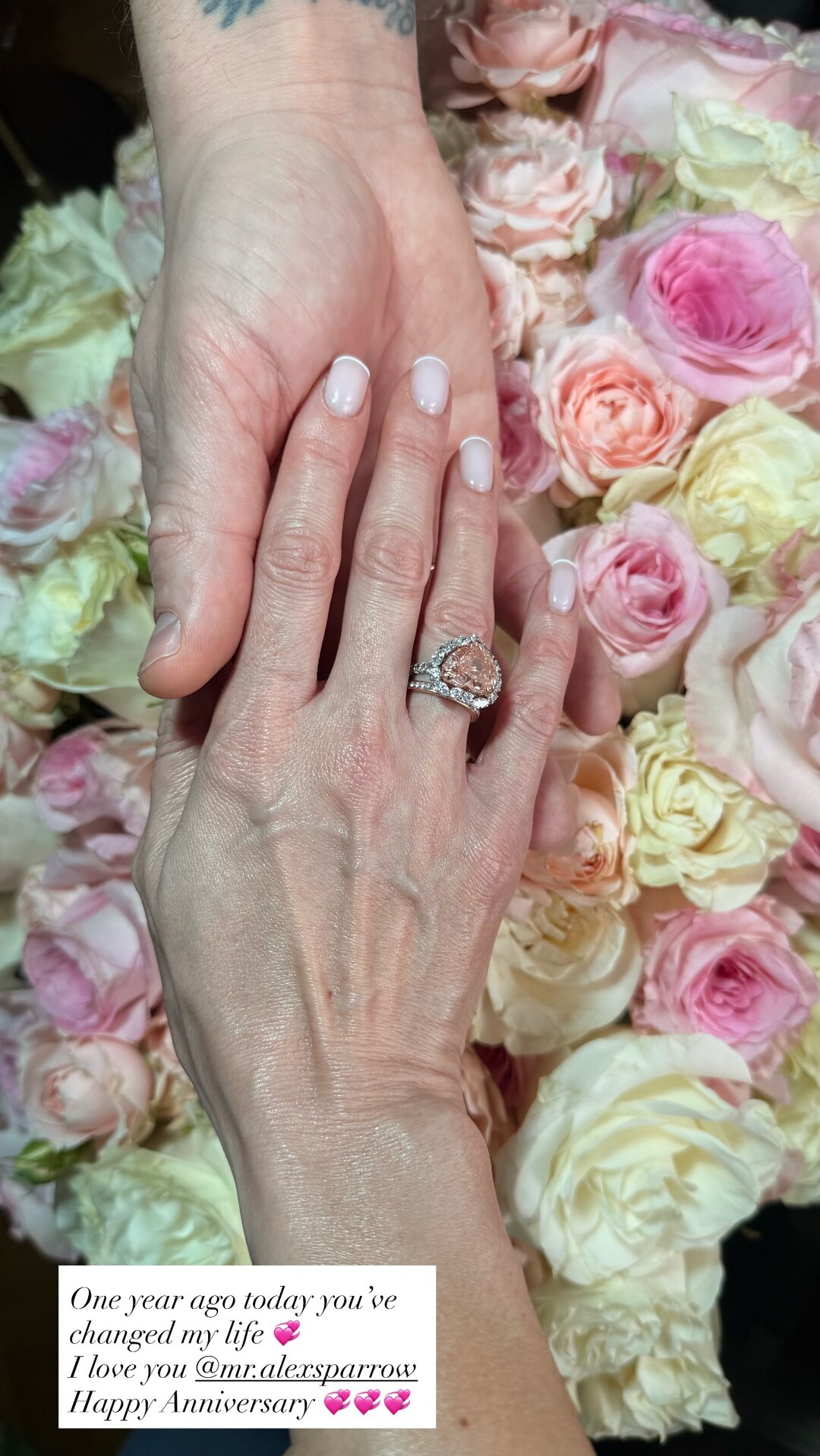 Оперная певица поздравила мужа Алексея Воробьёва с первой годовщиной брака и продемонстрировала роскошное кольцо с огромным розовым бриллиантом. Украшение, судя по всему, обошлось певцу в несколько миллионов рублей.